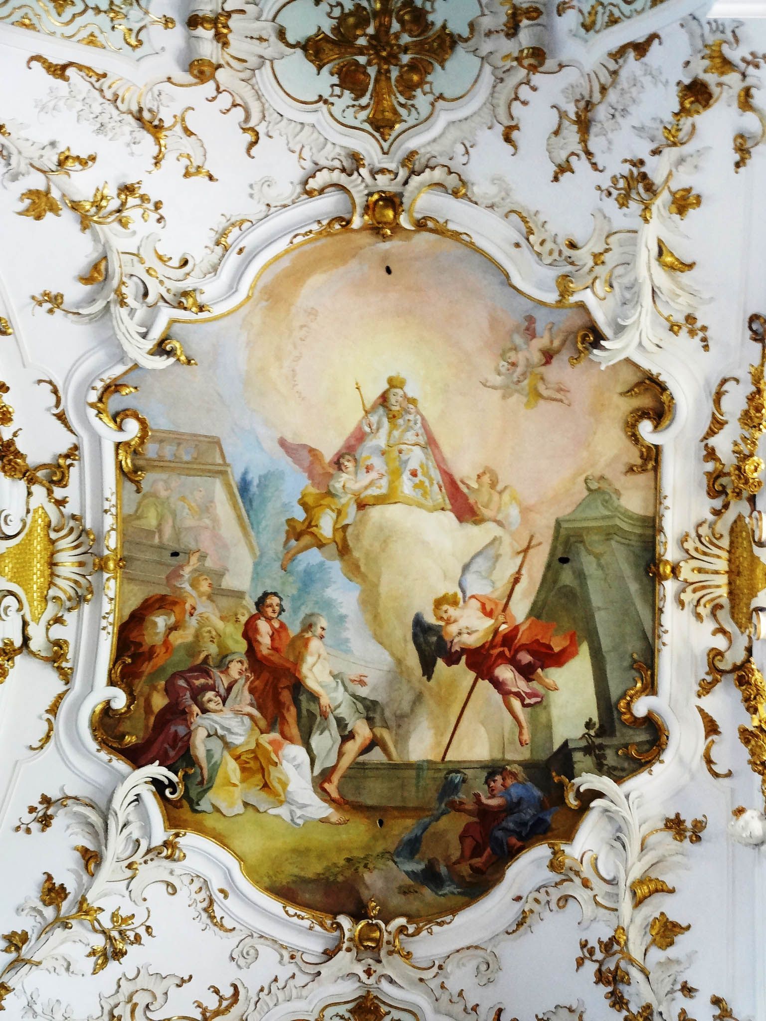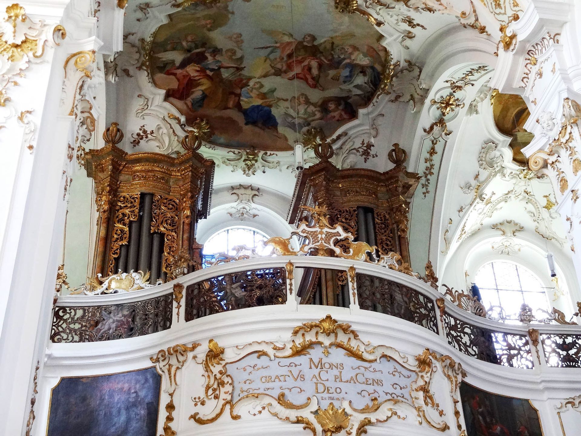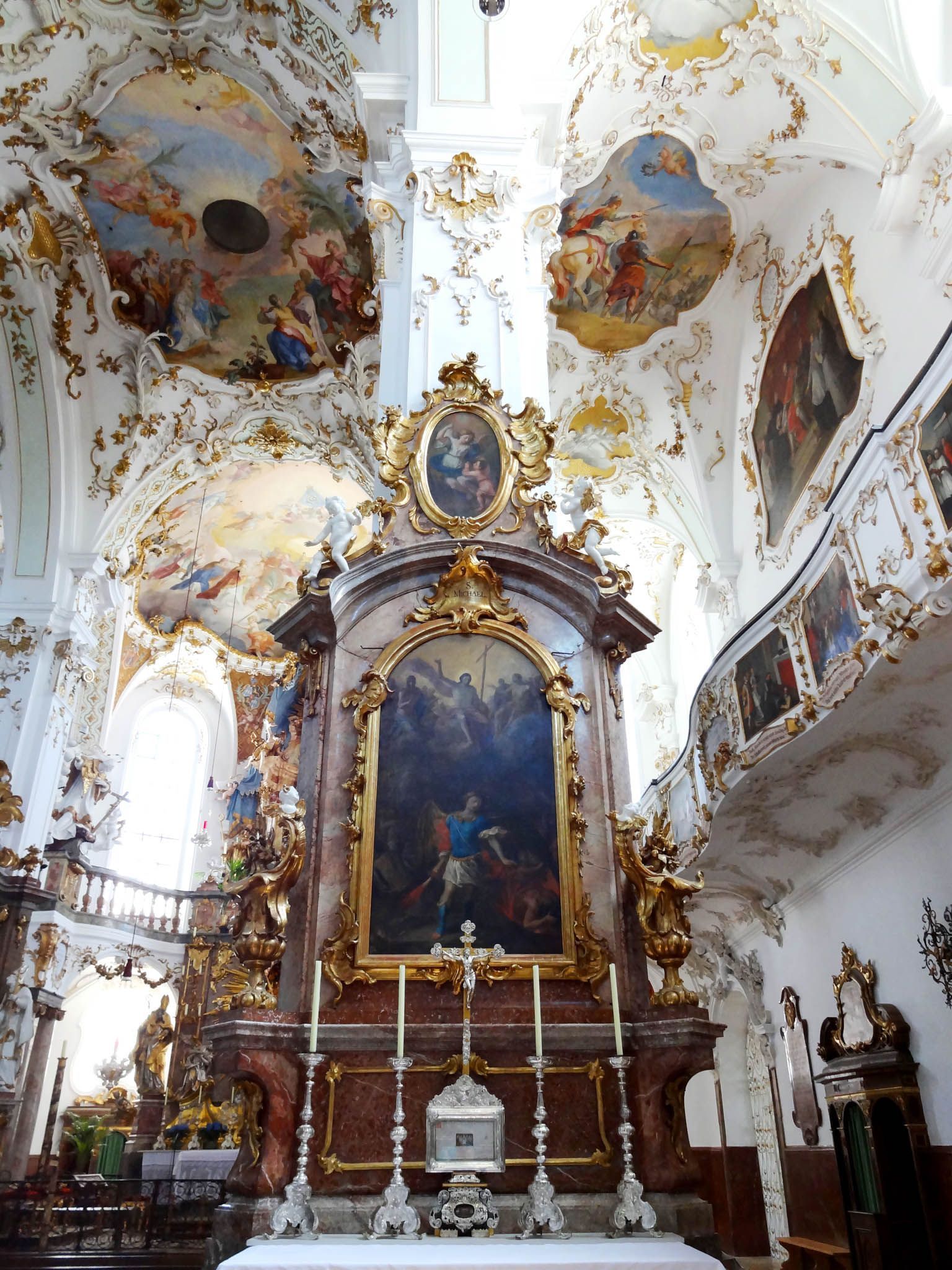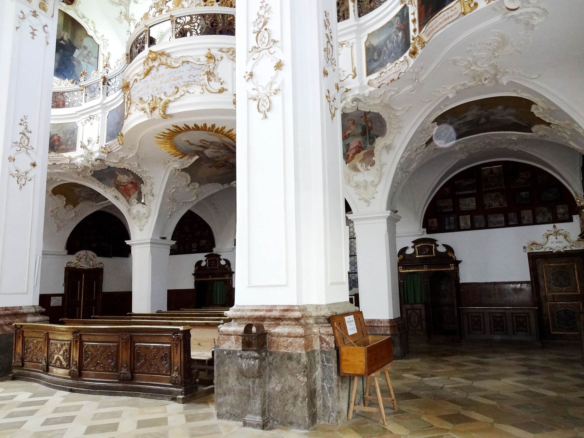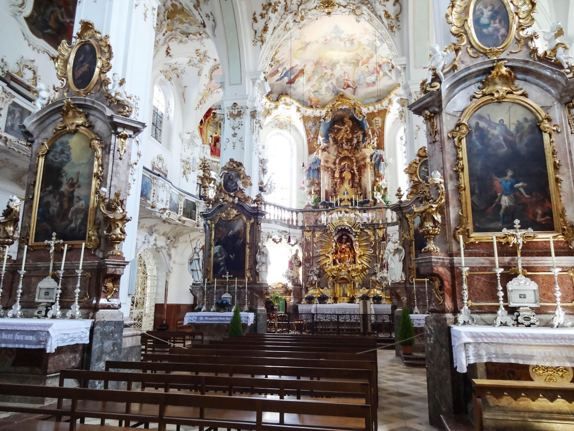 Der Rokokokirchenraum teilt sich in eine Ober- und Unterkirche. Die Oberkirche war insbesondere auf die Mönche im Mönchschor ausgerichtet, während die Unterkirche in ihrer Gestaltung das "normale" Pilgervolk ansprechen sollte.