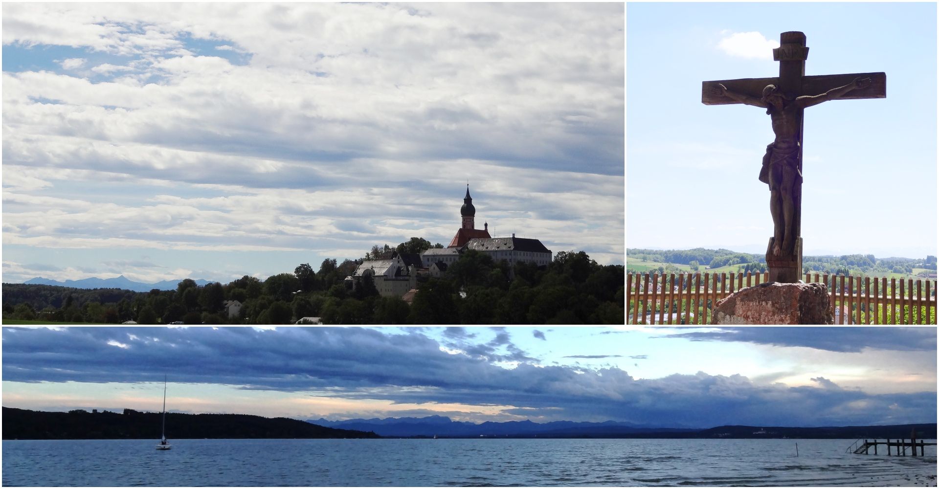 Kloster Andechs thront auf dem Heiligen Berg östlich des Ammersees in Oberbayern. Die Klosterkirche selbst wurde auf der höchsten Stelle des Berges erbaut. Zum Kloster gehören zahlreiche Wirtschaftsgüter sowie eine Brauerei. Bei klarem Wetter lässt sich aus nördlicher Richtung blickend ein wunderschöner Ausblick auf das Alpenpanorama genießen. Berg und Klosterkirche gehören zu den bekanntesten und beliebtesten Sehenswürdigkeiten in Deutschland und verzeichnen jährlich ca. eine Million Besucher aus aller Welt.