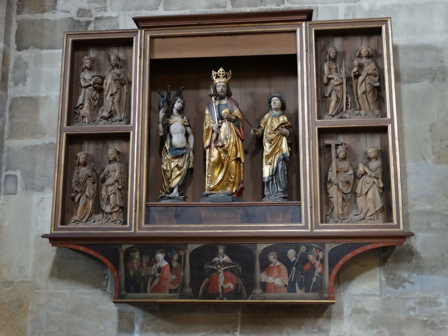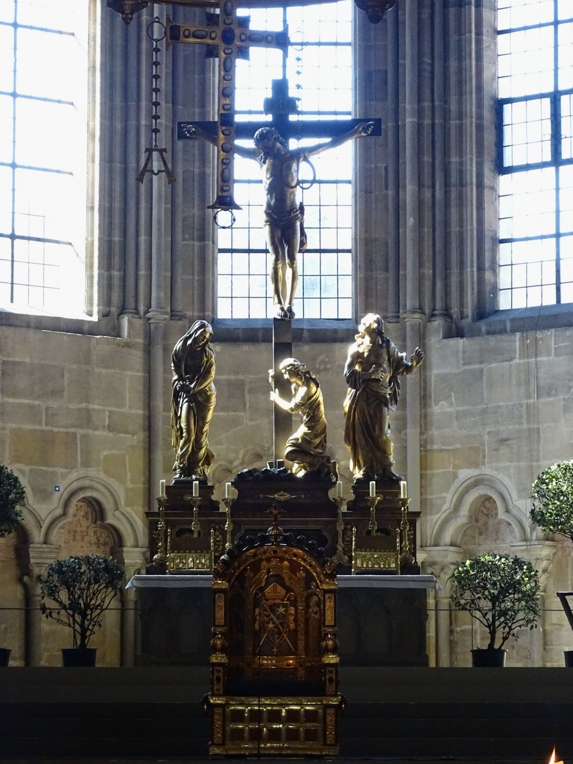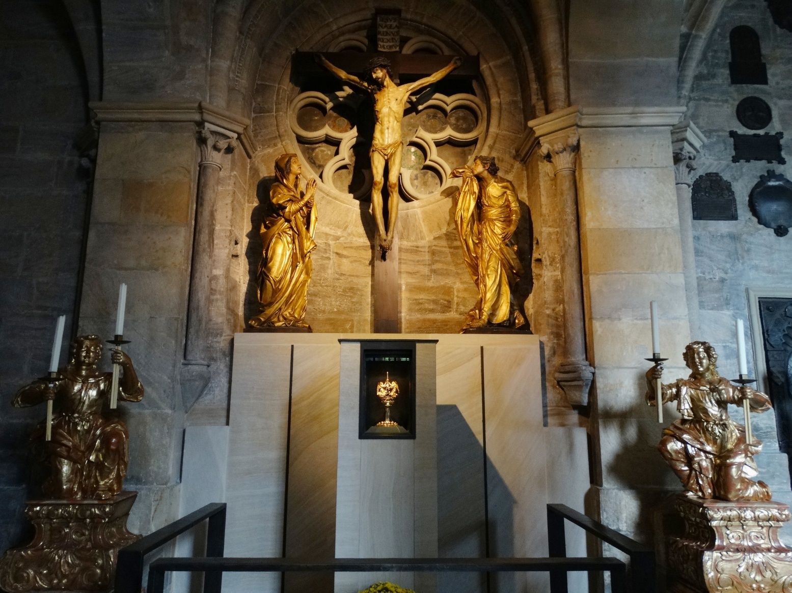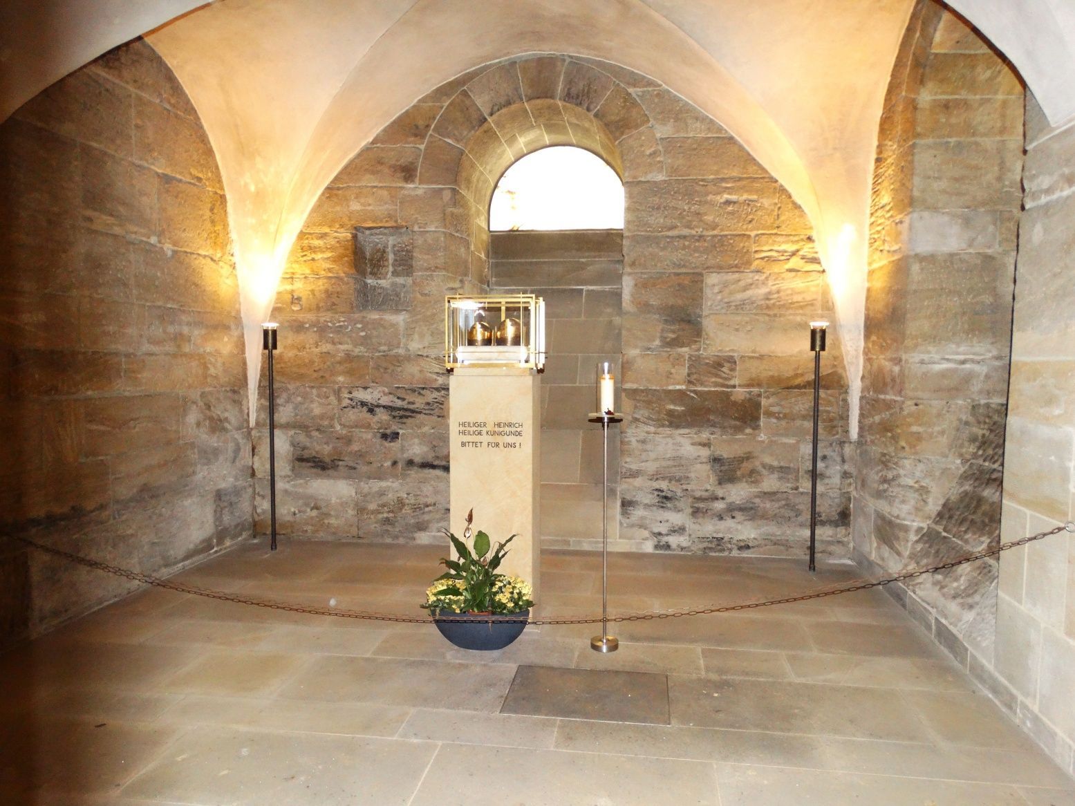 Kaisergrab von Heinrich II. und seiner Gemahlin Kunigunde; ihre Häupter sind separat in einem Glasschrein in der Westkrypta ausgestellt; beide wurden heilig gesprochen; einmalig bis heute in der Katholischen Kirche