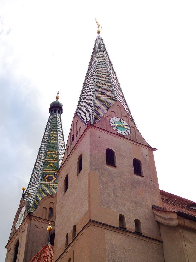 BESCHREIBUNG: Ein Vorgängerbau der heutigen Stadtpfarrkirche in Beilngries wurde erstmals 1305 urkundlich erwähnt. Von diesem romanischen Kirchenbau ist lediglich der nördliche romanische Turm erhalten geblieben, der in spätere Neubauten grundsätzlich integriert wurde. 1910 wurde die Kirche in ihrer heutigen Form im Neobarockstil errichtet. Ein zweiter Turm wurde bei diesem Bau dem nördlichen Turm in ähnlicher Bauweise vorgestellt, so dass die Kirche St. Walburga heute eine Doppelturmfassade mit zwei verschieden Türmen und einer zweisäuligen Vorhalle besitzt. Besonders auffällig sind die Spitzdächer der Türme, die mit grün-gelb-braun gemusterten Biberschwanzziegeln geschmückt sind.