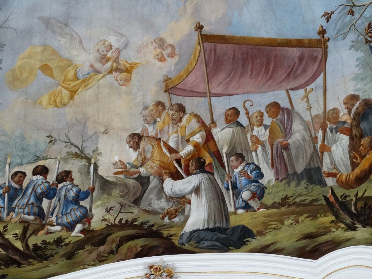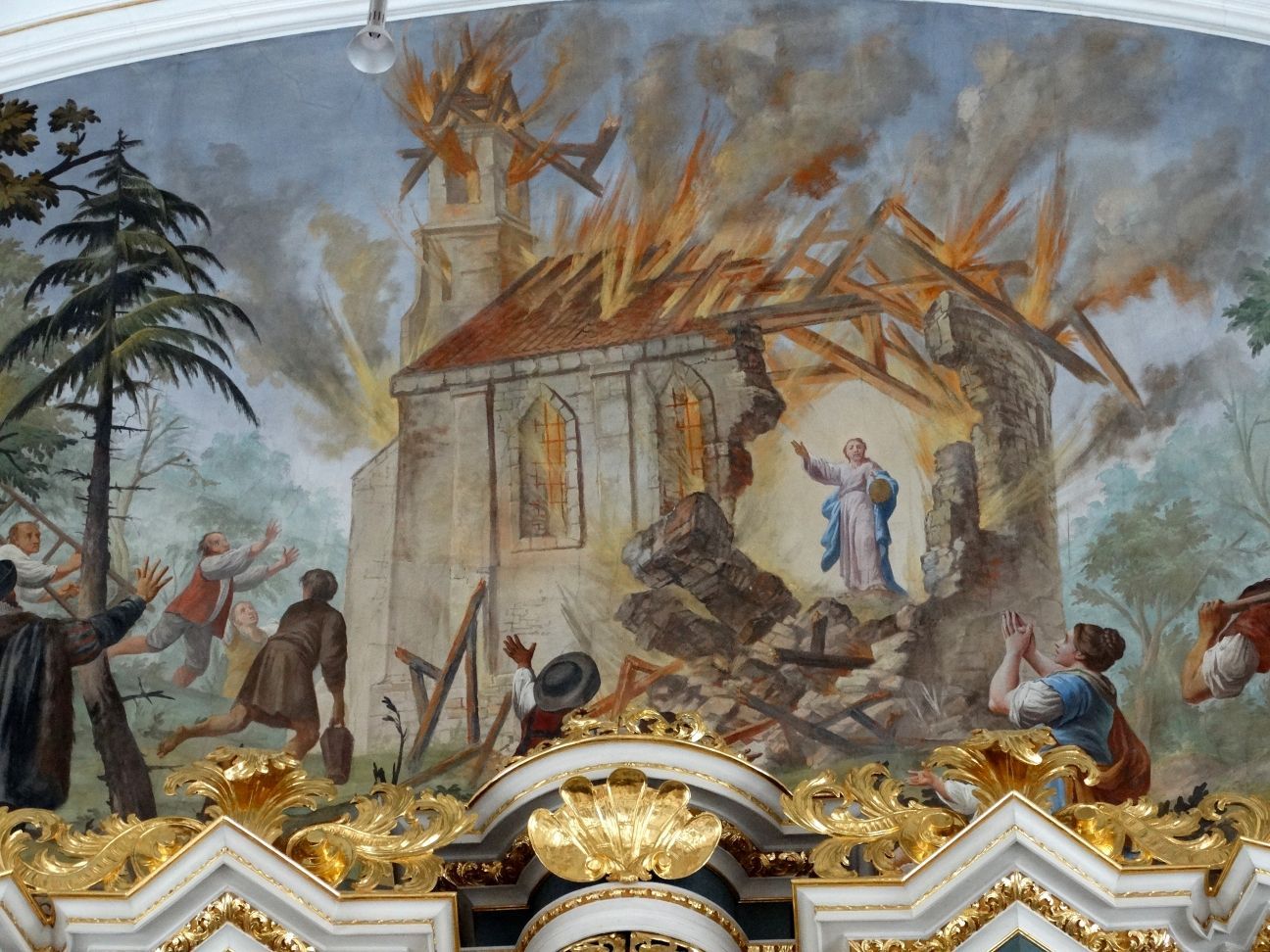 HOSTIENLEGENDE VON BETTBRUNN: Es begab sich um 1125, dass ein Hirte die hl. Hostie nach einer Messe mitnahm. Er wollte diese für sich, um auch auf dem Feld seinen Herrn im hl. Sakrament verehren zu können. Er barg diese in seinem Hirtenstab, den er eigens dafür geschnitzt hatte. Als er eines Tages auf der Weide das Vieh hütete, brach ein Gewitter aus und das Vieh lief erschrocken auseinander. Der Hirte warf verärgert den Hirtenstab nach dem Vieh. Dabei fiel die hl. Hostie zur Erde und wurde vom Wind auf ein entferntes Felsenstück getragen. Auf diesem Felsenstück steht heute der Gnadenaltar. Die hl. Hostie blieb auf dem Felsenstück liegen und das Vieh sammelte sich um sie und kniete anbetend nieder. Niemand konnte die hl. Hostie aufheben, erst der herbeigeholte Regensburger Bischof Hartwig konnte dies, nachdem er den Bau einer Sühnekapelle gelobt hatte. Die Sühnekapelle brannte 1329 ab, nur die kleine Erlöserstatue (Hl. Salvator) blieb verschont. Darauf hin begann man mit dem Bau einer Wallfahrtskirche.