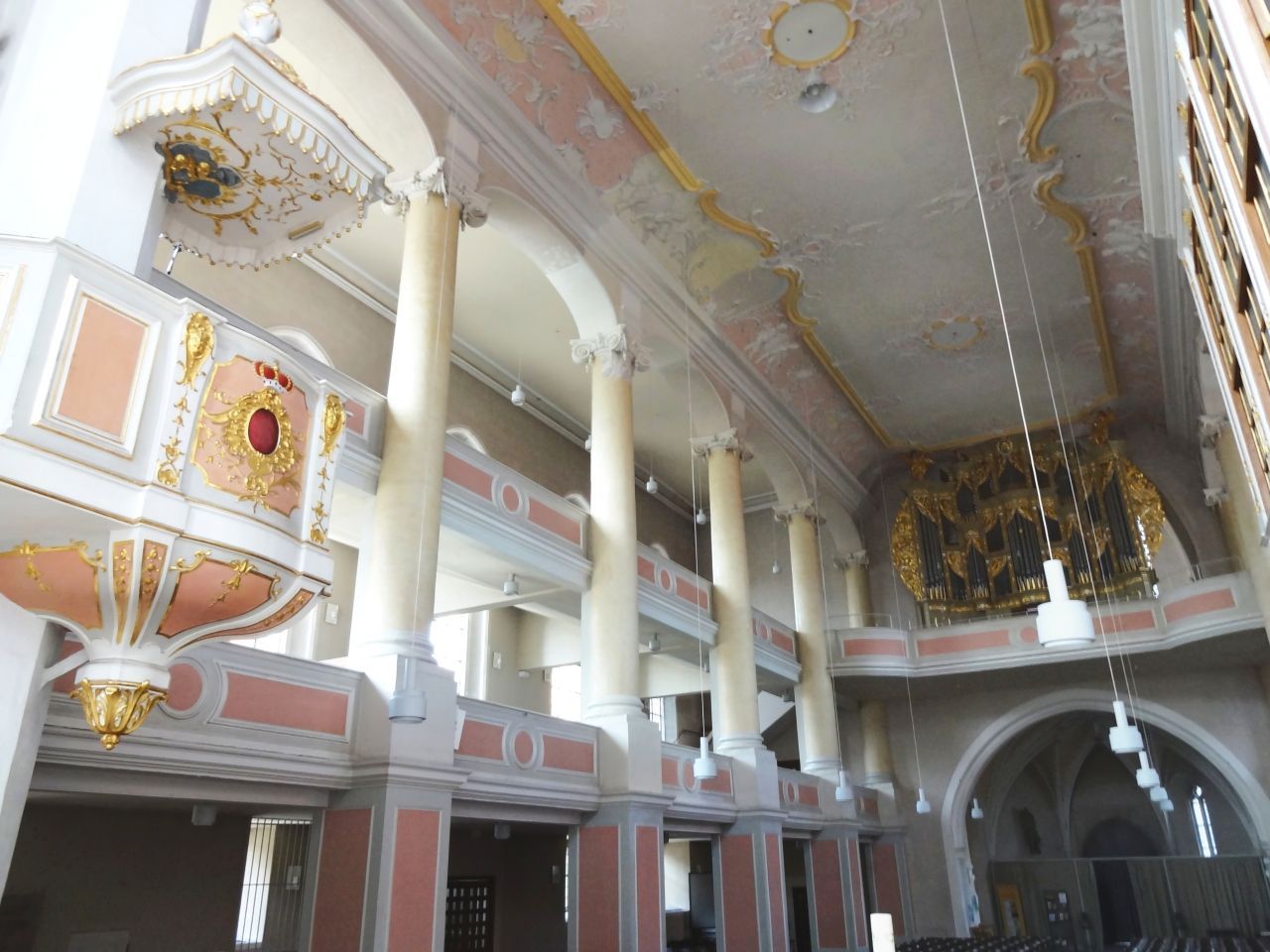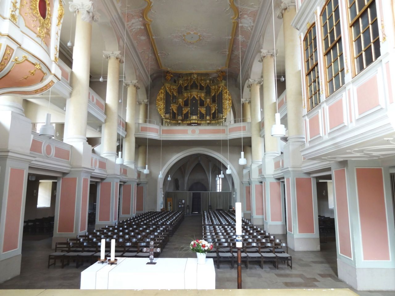 Einst gehörte das Gotteshaus zur Benediktinerabtei Saalfeld und diente den Mönchen als Klosterkirche, was der längliche Chorraum noch heute bezeugt. Im 15. Jhdt. verschwand das klösterliche Leben und St. Moriz war nunmehr dem allgemeinen Volk als Stadtpfarrkirche vorbehalten. Während der Reformation wurden leider viele Kostbarkeiten wie Altäre und Figuren entfernt. Allein das Grabmal (Epitaph) im Renaissancestil des Herzog Johann Casimir von 1595, das anstelle eines Hochaltars die Kirche ziert, blieb erhalten.