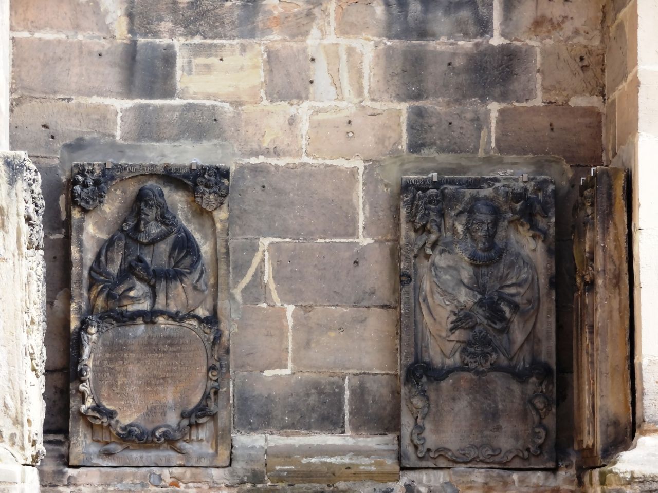 Herzog Johann Casimir, der Coburg von 1586-1633 regierte, ließ die Leichname seiner in Österreich in Gefangenschaft verstorbenen Eltern nach Coburg überführen und in St. Moriz beisetzen. Dazu stiftete er das Grabmal. Schöpfer dieses Kunstwerks war Nikolaus Bergnet aus Thüringen, der sich selbst als Figur am Sockel unten links dargestellt hat.