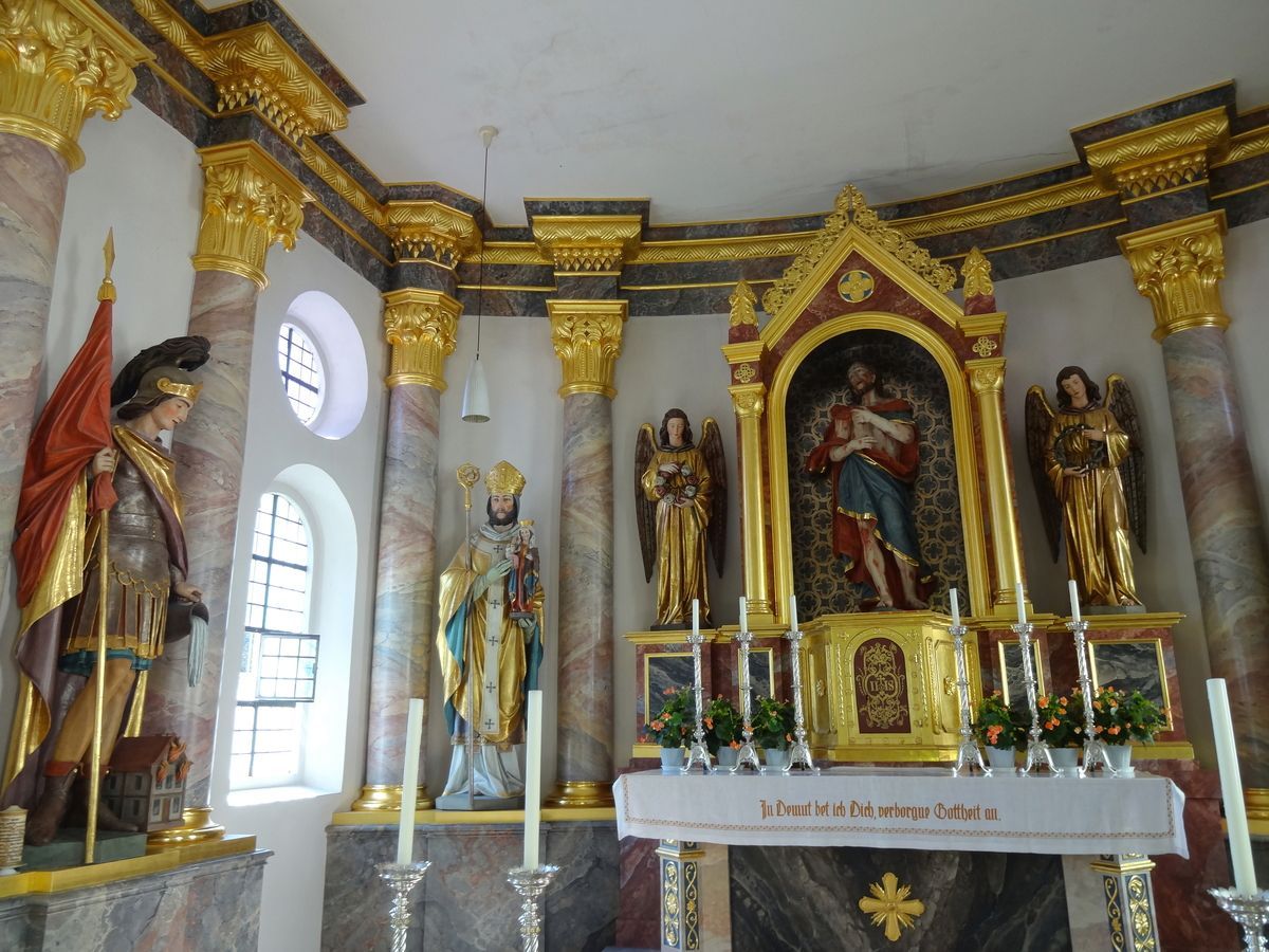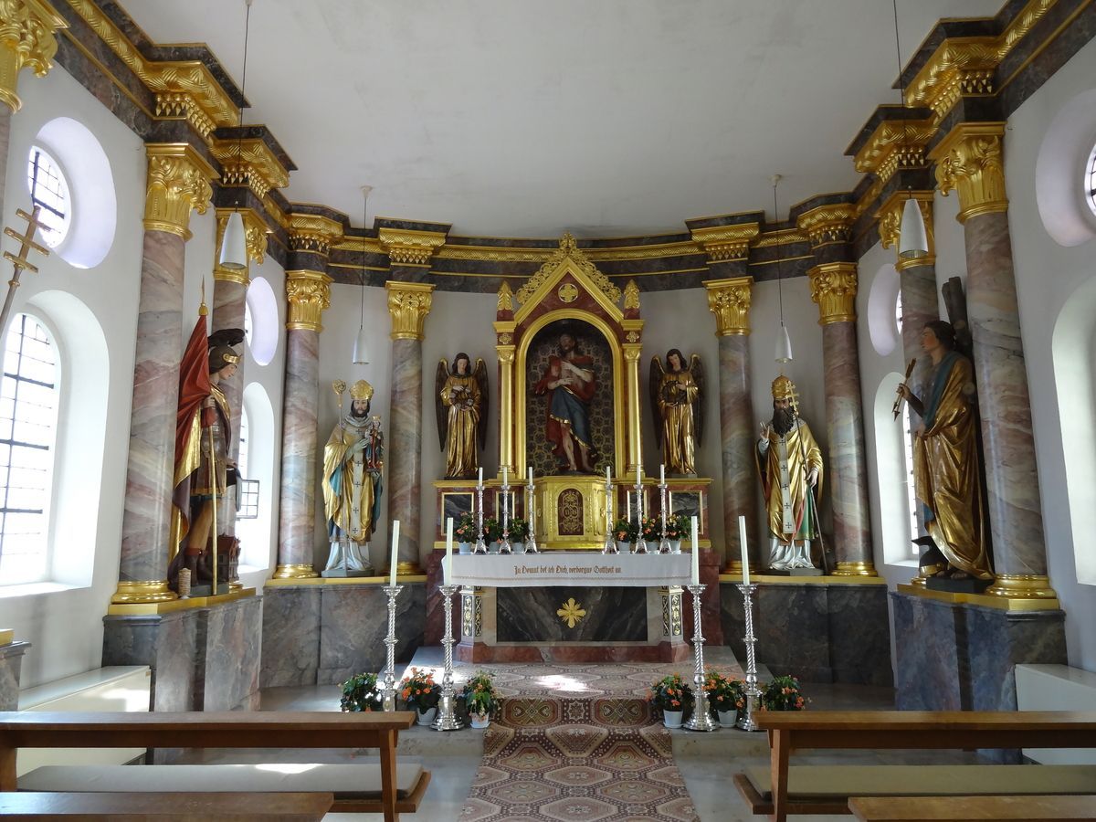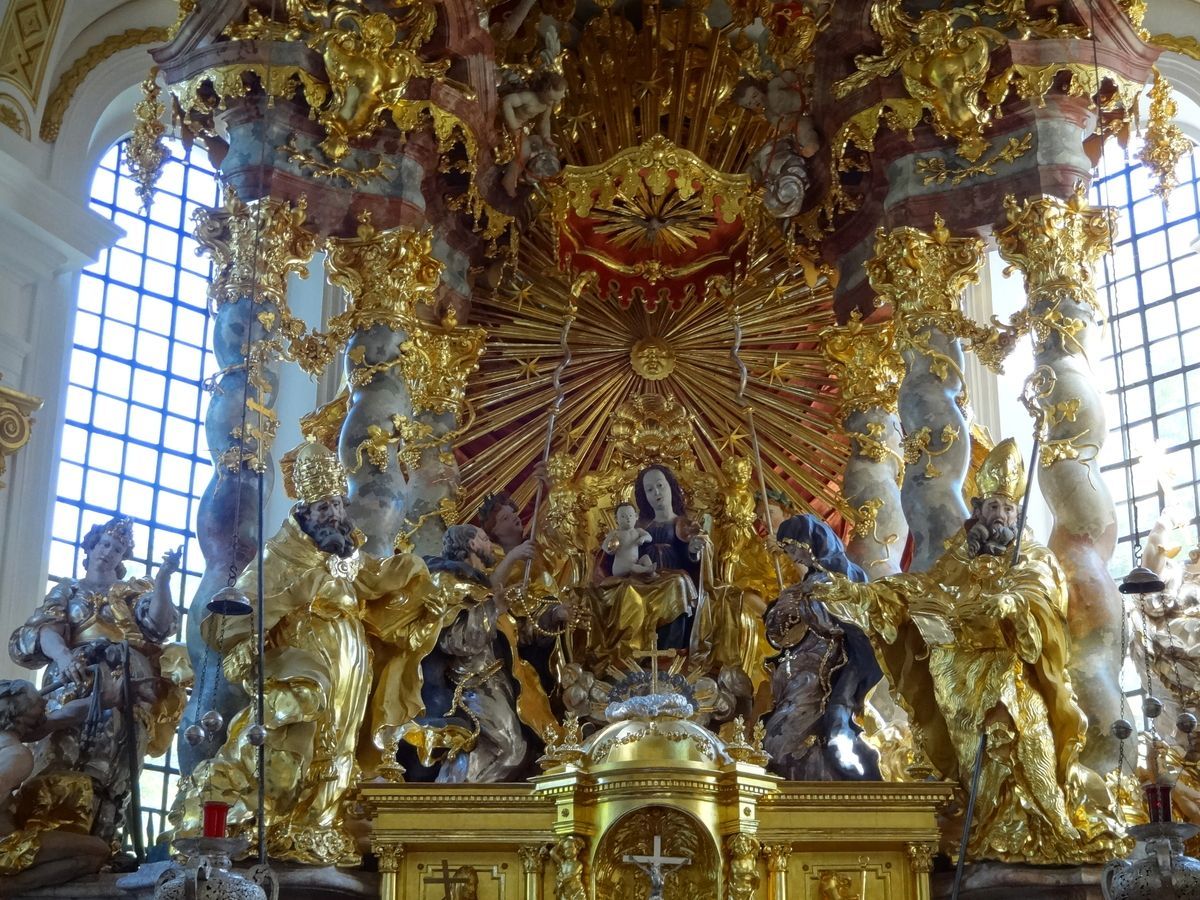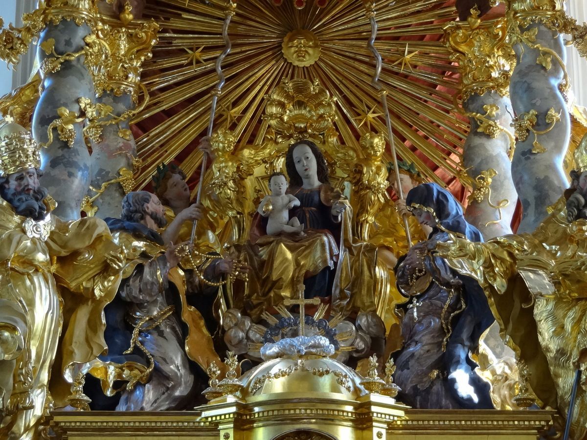 Herzstück der Wallfahrtskirche ist jedoch der prunkvolle Rokokohochaltar, der 1728 nach Plänen von Egid Quirin Asam geschaffen wurde. In der Mitte das Gnadenbild – Maria mit dem Jesuskind auf ihrem Schoß. Zur Rechten die Hl. Katharina von Siena, zur Linken der Hl. Dominikus. Hinter der Gnadenmutter erstrahlen ihre Attribute - Sonne, Mond und Sterne (vgl. Bibel, Off 12, 1); darüber erhebt sich der Hl. Geist in Form der Taube. Engel krönen das Gnadenbild mit einer gigantischen Krone und beschließen somit das Meisterwerk.