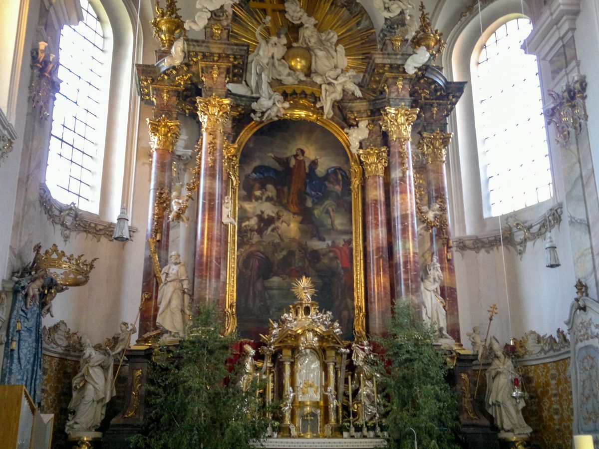 Der prächtig gestaltete Hochaltar von Ignaz Günther, der die glorreiche Aufnahme Mariens in den Himmel zeigt, unendlich viele Heiligen- und Engelsfiguren, marmorisierte Säulen, warme Farben, reiche elegante Verzierungen und Ornamente, wunderschöne Decken- und Altargemälde sowie die beeindruckende Architektur, die den Betrachter in Licht und Weite eintauchen läst, erheben dieses wirklich herausragende Gotteshaus zu einem Meisterwerk des bayerischen Rokokos.
