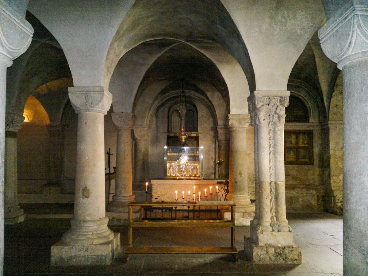 Eine weitere Sehenswürdigkeit ist der goldene Schrein mit den Gebeinen des Hl. Korbinian in der romanischen Krypta der Domkirche; daneben die Reliquienschreine des Hl. Lantpert und des Hl. Nonnosus. Hier findet man auch die berühmte Freisinger "Bestiensäule", die mit dem Dombau um 1159 entstand und den Kampf zwischen Himmel und Hölle - Gut und Böse veranschaulichen will.