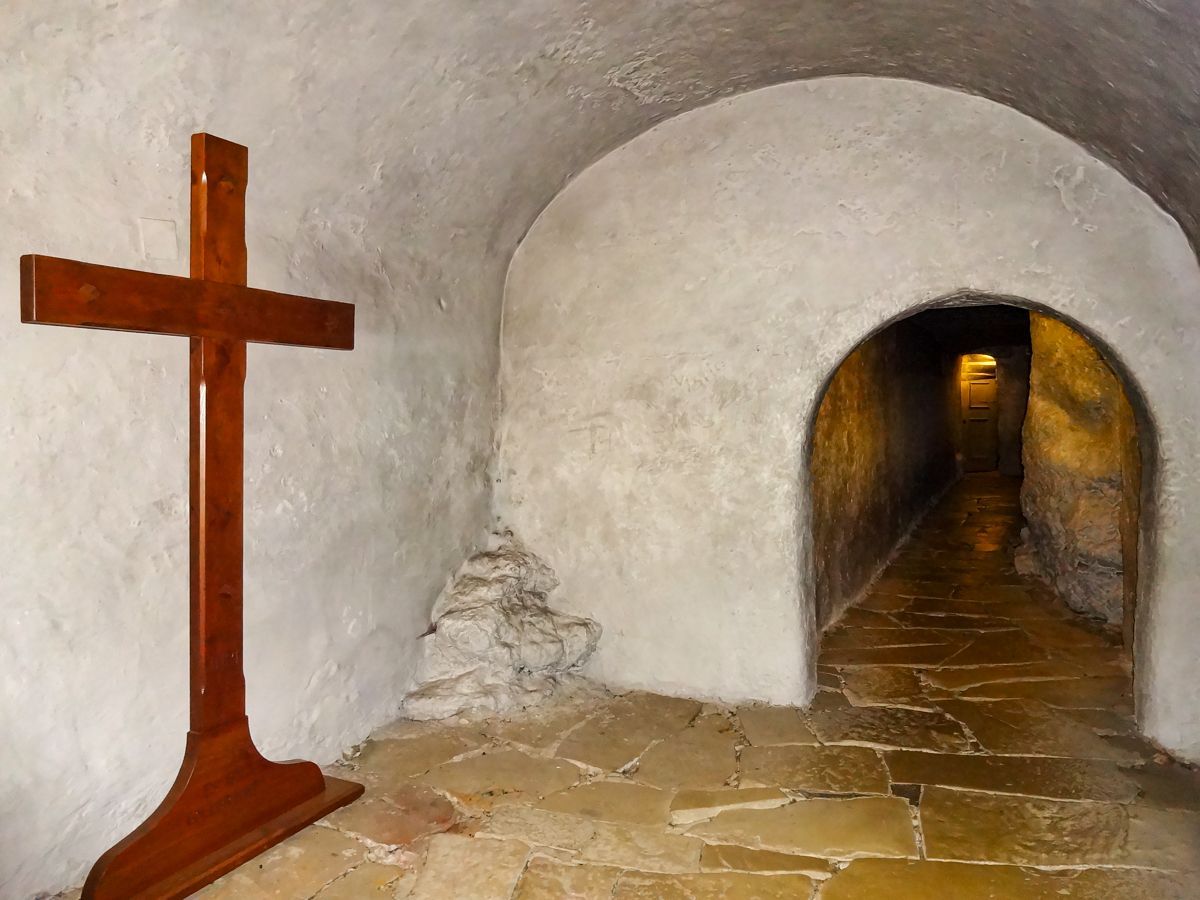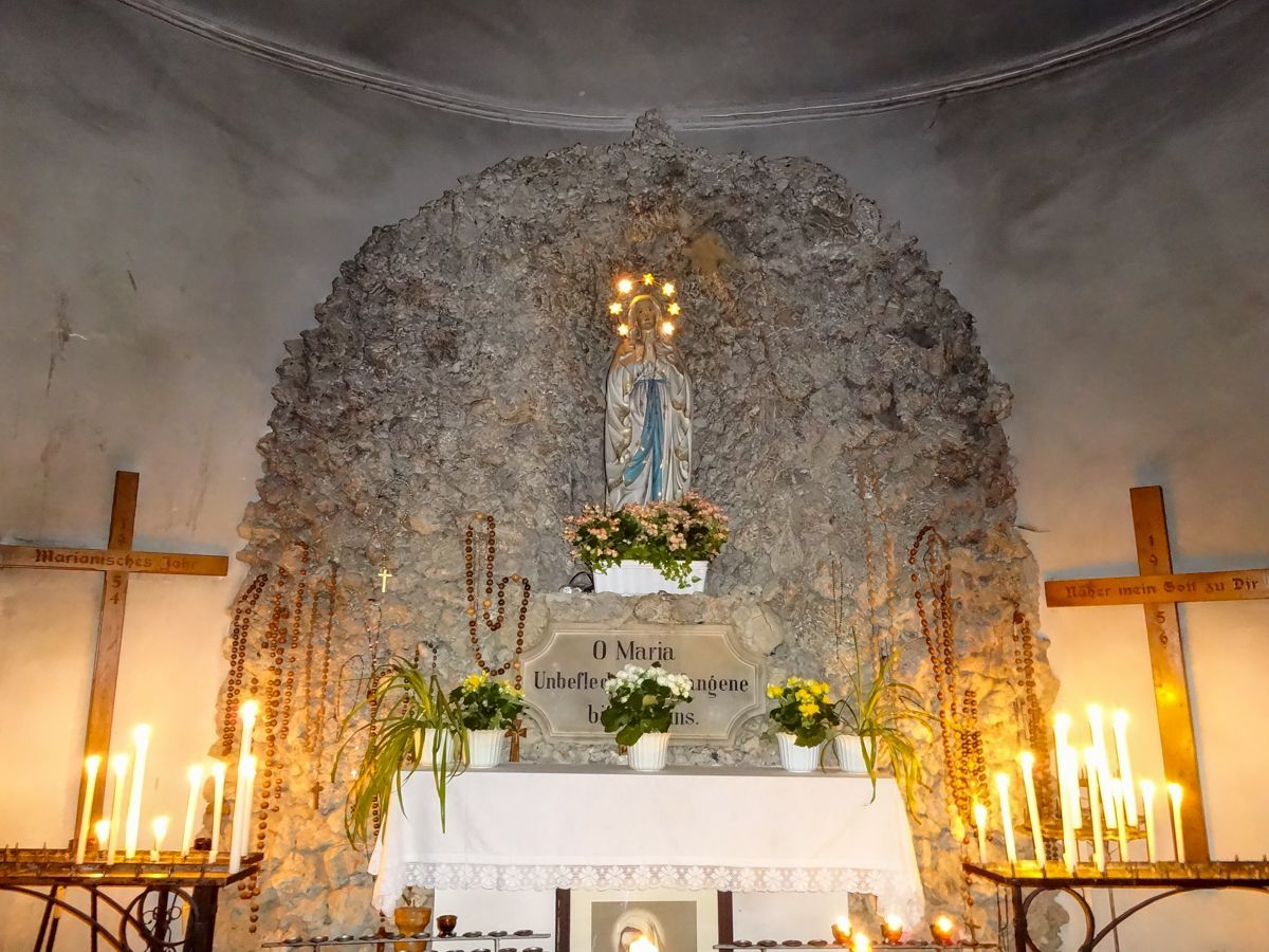 Das Gotteshaus unterteilt sich heute in eine Unterkirche und eine Oberkirche. Von außen führt eine 33-stufige Steiltreppe - ein Relikt aus Burgzeiten - direkt zur Oberkirche. In der Unterkirche verbaute man 1891 eine Lourdesgrotte; von dort aus führen ebenfalls schmale Felsengänge und eine Wendeltreppe zur Oberkirche. Diese verleihen der Kirche ihren mittelalterlichen mystischen Charakter.