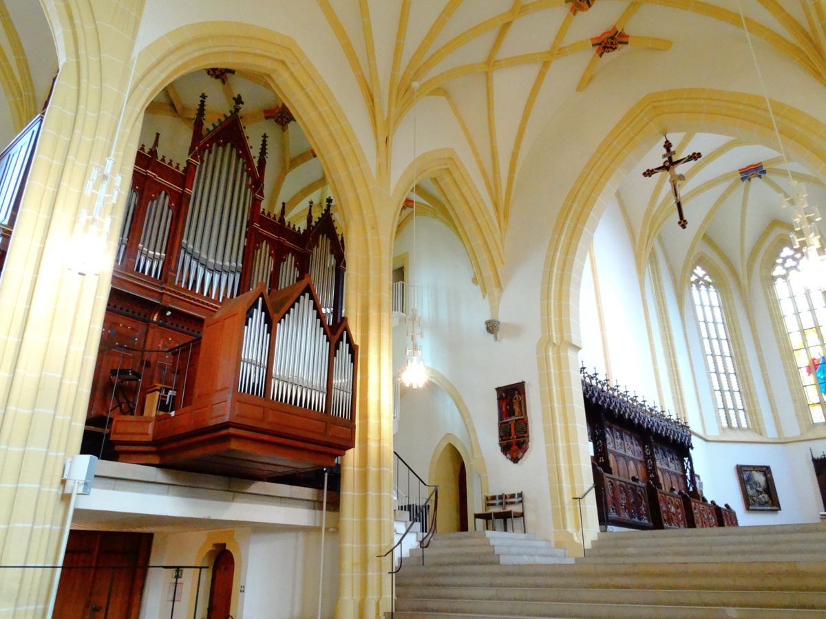 BESCHREIBUNG: Bereits 1250 stand auf dem sog. Schlossberg in Herrenberg eine kleine Marienkapelle. 1276 beschloss man an dieser Stelle den Bau einer dreischiffigen Hallenkirche im spätgotischen Stil, der 1328 vollendet wurde. Sie ist historisch somit die erste spätgotische Hallenkirche in Württemberg. Es erfolgte zunächst die Gründung eines Chorherrenstifts, dass 1481 von den „Brüdern vom gemeinsamen Leben“ abgelöst wurde. 1534 löst man im Zuge der Reformation das Chorherrenstift auf; die Stiftskirche St. Maria wird evangelische Pfarrkirche.