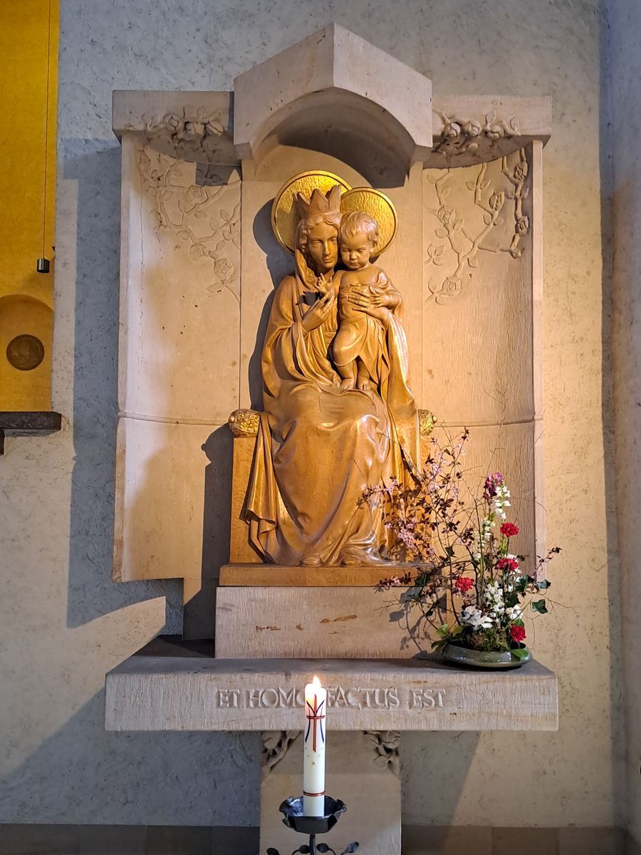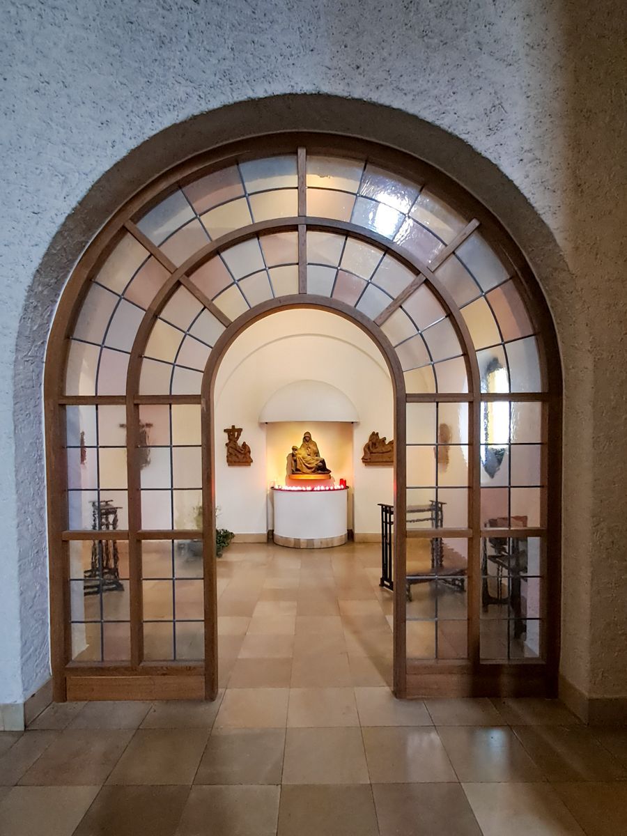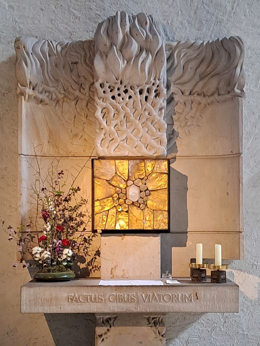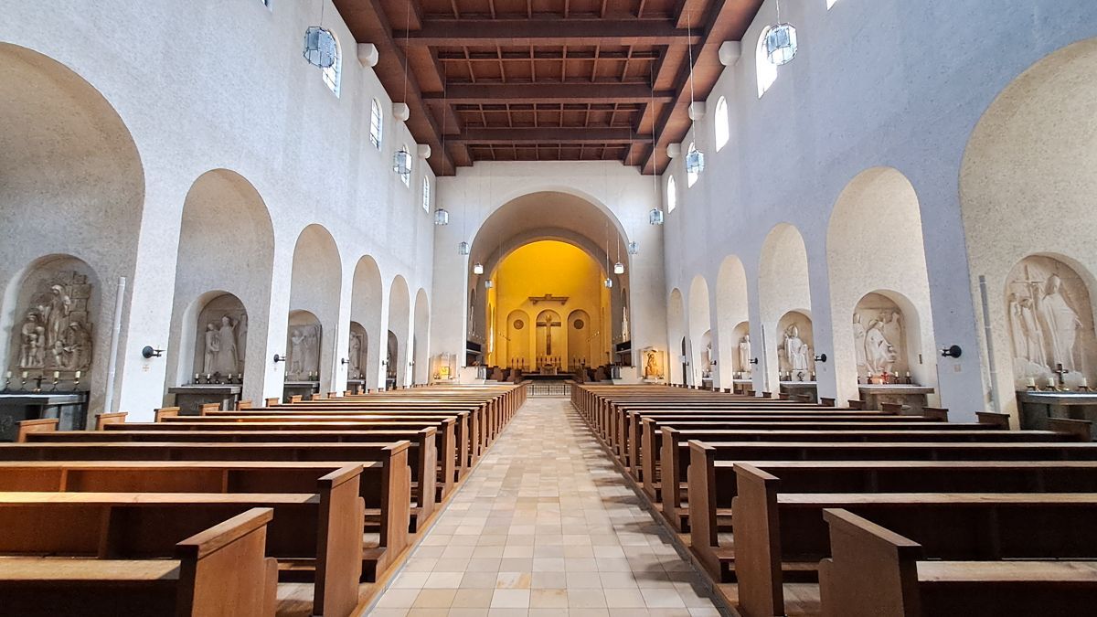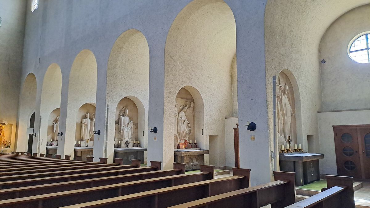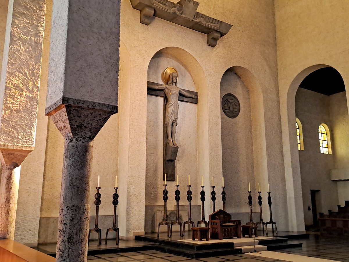 Im Gegensatz dazu wirkt das Innere der Kirche eher schlicht. Wer glaubt, hier auf Schönheit in Form einer herrlichen Kirche zu treffen, wird enttäuscht. In Münsterschwarzach wendet sich der Blick nach "innen". Dies zeigt auch das spirituelle Zentrum, das die Benediktiner hier im Laufe der Jahre geschaffen haben. Angebote wie Exerzitien, Seminare und Kloster auf Zeit laden ein, hier die Seele zur Ruhe kommen zu lassen.