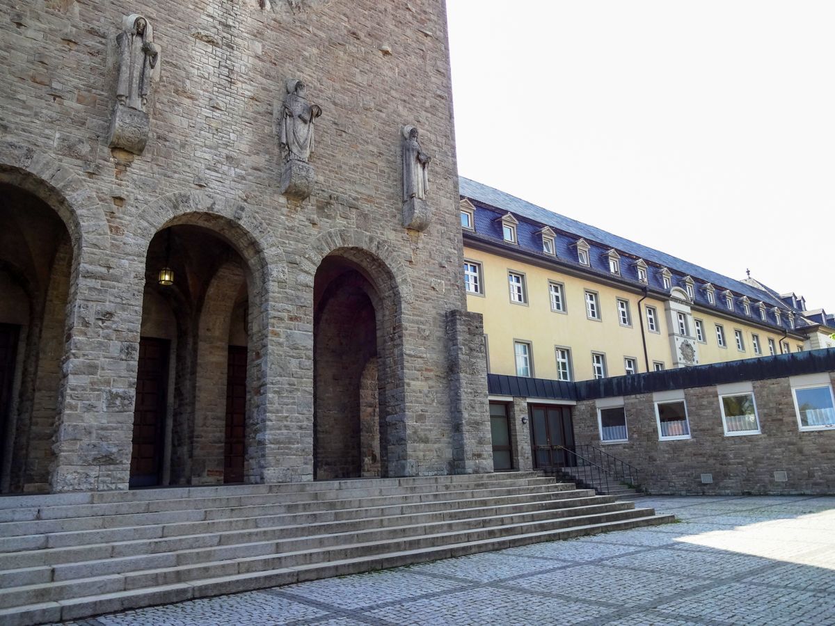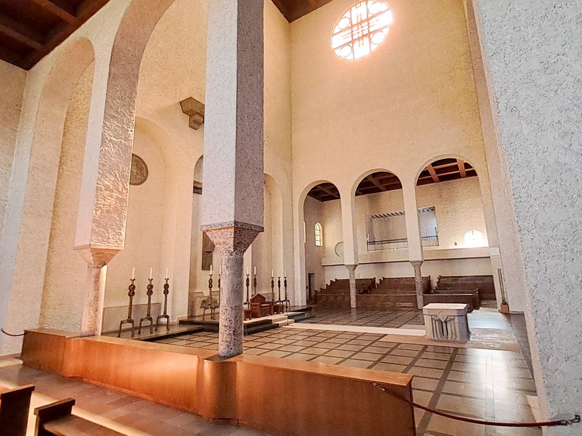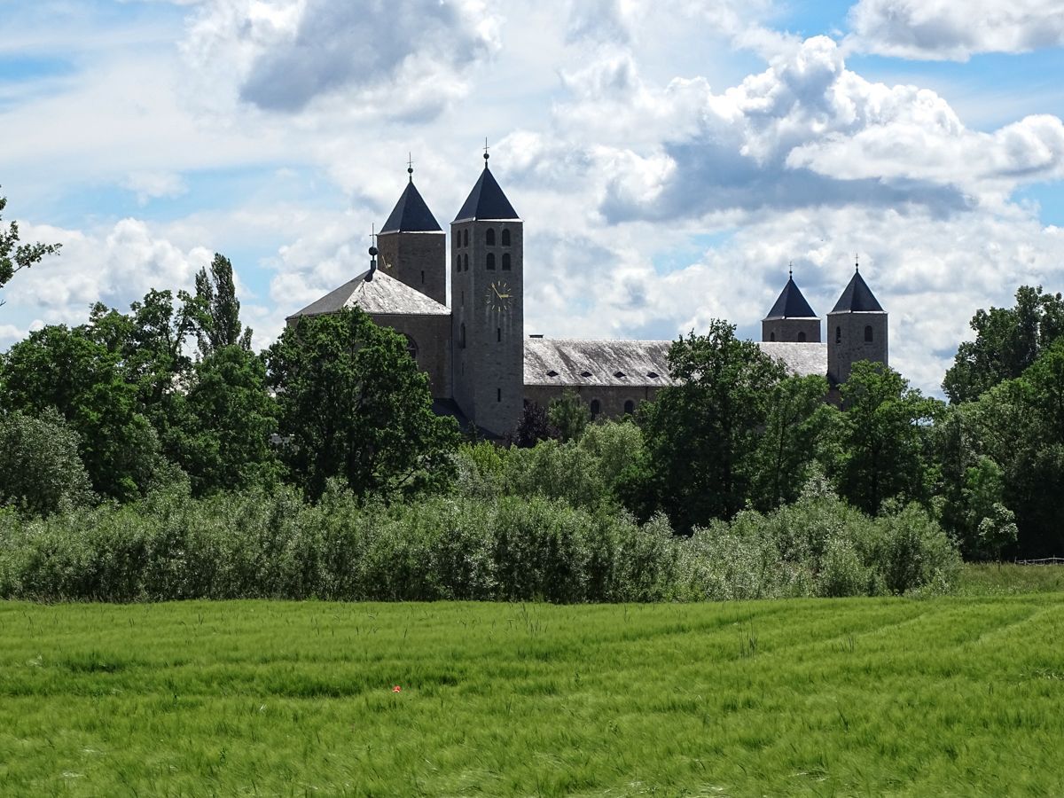 Erst 1935 wagte man sich an einen neuen Kirchenbau, der noch vor Kriegsbeginn vollendet wurde. Hierbei orientierten sich die Erbauer an der früheren Basilika aus dem 11. Jhdt. und gestalteten die neue Klosterkirche nach romanischem Vorbild. Typisches Merkmal der Abteikirche Münsterschwarzach ist ihre monumentale Gestalt. Mit ihren vier Türmen erhebt sie sich aus der Ferne wie eine Burg.