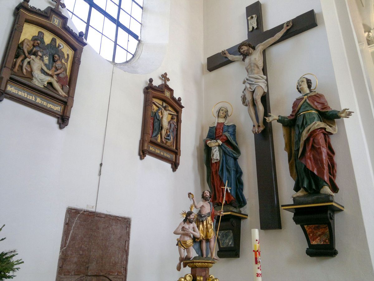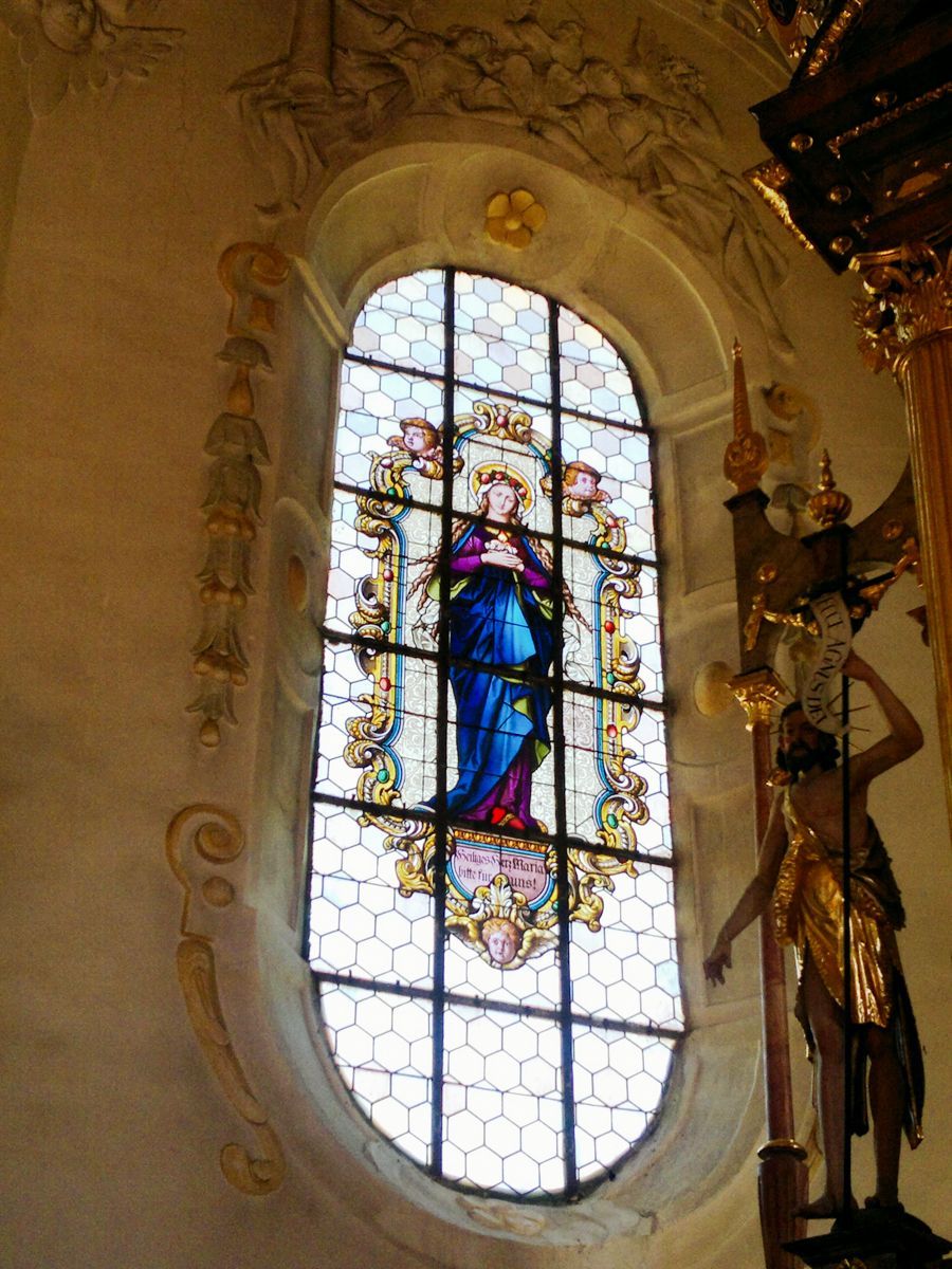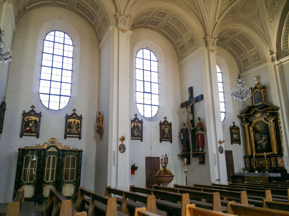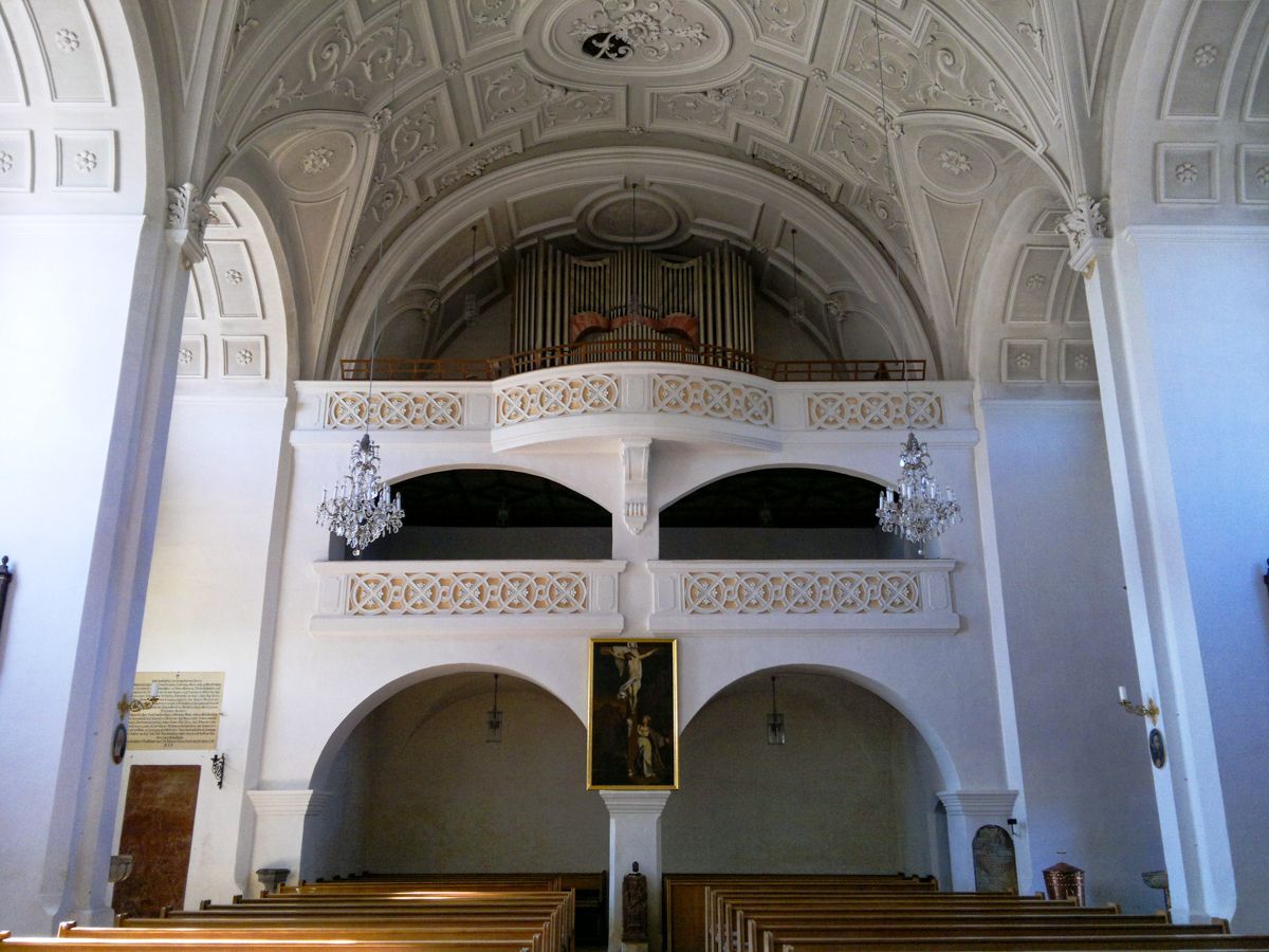 BESCHREIBUNG: Abt Johann IV. von Niederalteich ließ das Gotteshaus im Renaissancestil während des Dreißigjährigen Krieges von 1624-1628 erbauen. Die Kirche wurde auf das Patronat der beiden Apostel Simon und Judas Thaddäus geweiht, die im Hochaltar unter Maria, der "Königin der Apostel", dargestellt sind. Weiße Stuckornamente und -reliefs im Deckengewölbe ziehen sich vom Chor bis zur Doppelempore und verleihen der Kirche eine geschmeidige Eleganz. Besonders wunderschön anzusehen sind auch die beiden barock gestalteten Seitenaltäre - links, das Martyrium des Hl. Sebastian - rechts, die geistige Vermählung der Hl. Katharina mit dem Jesuskind.